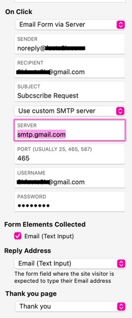I started with using my gmail and it didn’t work. I had first tried using the Email from server option and didn’t work so I tried again to use the custom smtp: