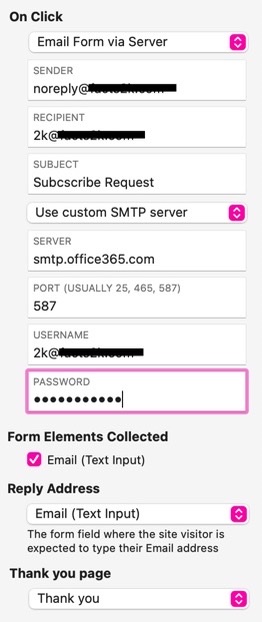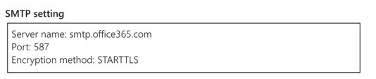 Greenskin is right, outlook 365 won’t work, tried and failed before. I am using a free google email email and misuse the smtp for sending emails. The other side won’t see that it comes from gmail because you give a name for the sender email.