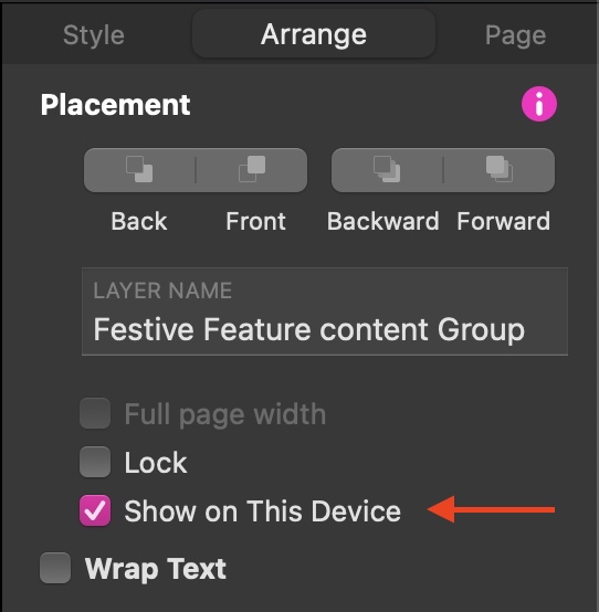 If your page isn’t structured in layout blocks, you could select everything on the page and group them. Just like with the layout block option, with the group selected, switch to the mobile device, go over to the arrange panel and deselect the Show on This Device option. When you’ve created your mobile page, do the same thing - group everything on the page, switch to the desktop version and deselect the Show on This Device option.
