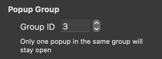 A simple issue to resolve, Just give your popup a unique group ID. In my example, I gave it a group ID of 3. This ensures that other popups on the page remain open.