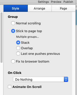 Very newbie to site creation, I’m trying to make a horizontal menu stay in place at top of page when I scroll down.