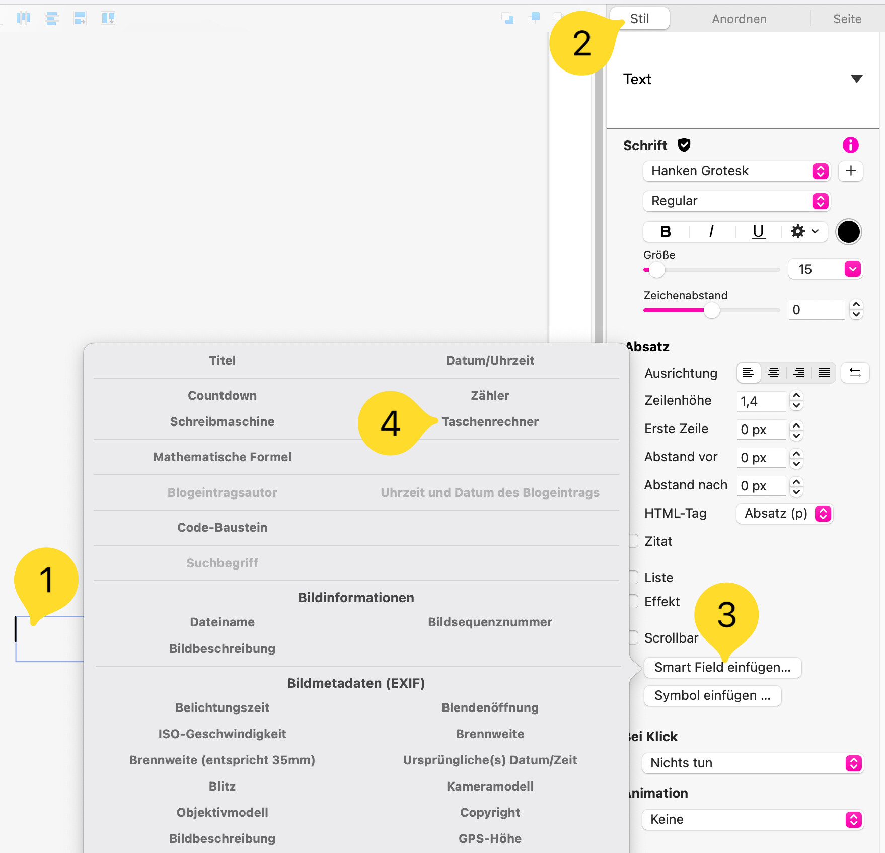 Es ist ganz normal, dass du im Sitely-Canvas weiterhin „Rechner“ siehst – der endgültige Text erscheint erst in der Vorschau.