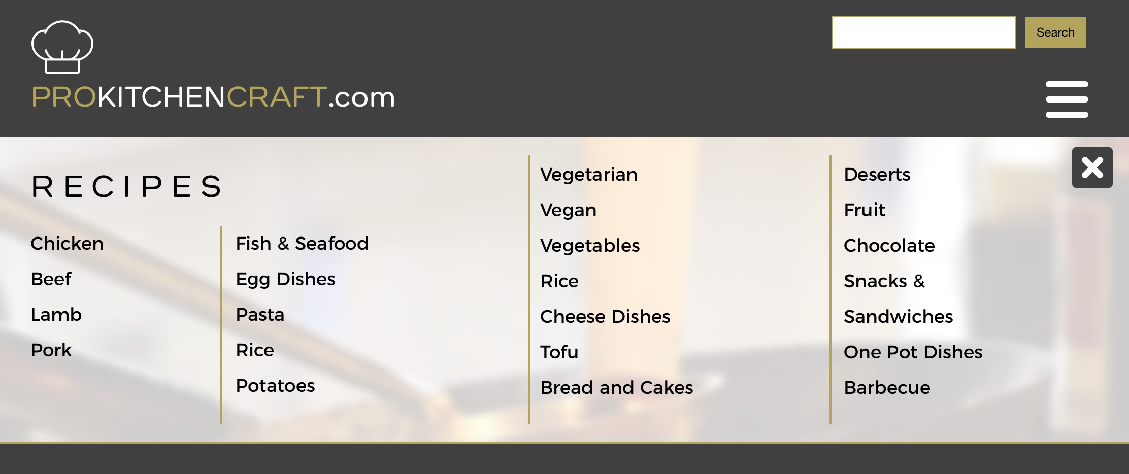 Here is the page with the recipe mega menu selected - (Note: it is positioned to cover the header image on the page)