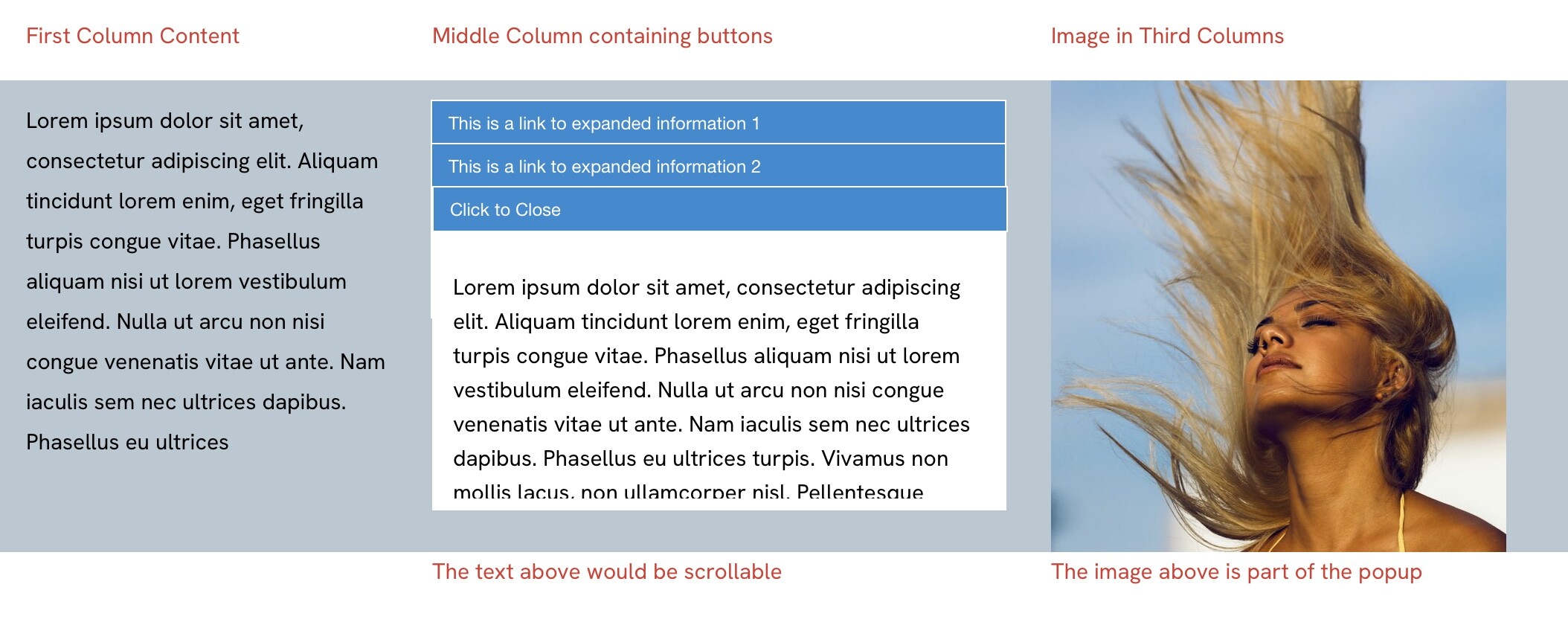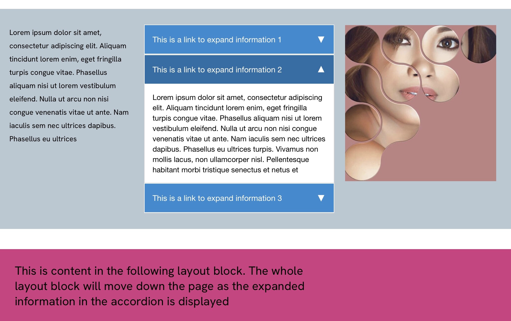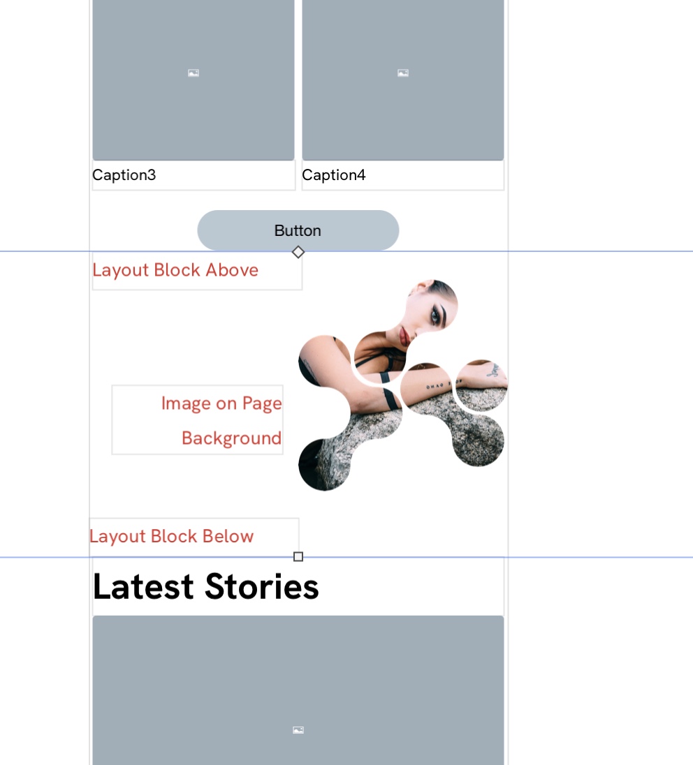 If I now move the bottom layout block up the page, you will see that it starts to cover the image which remains in place: