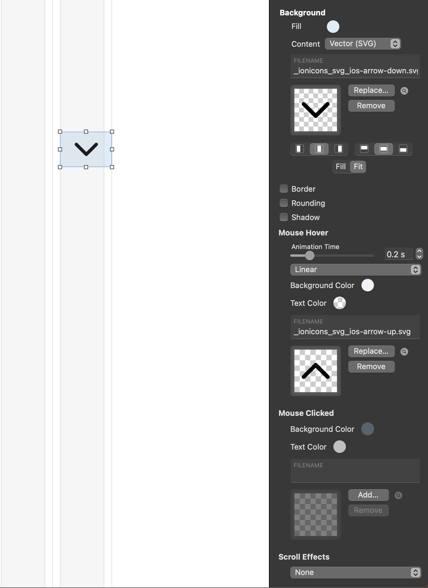You would have two buttons with the up and down chevron in each. One would pop open the Popup (labeled X) and the second button would close the same Popup (labeled X). These functions you’ll find in the right hand panel.