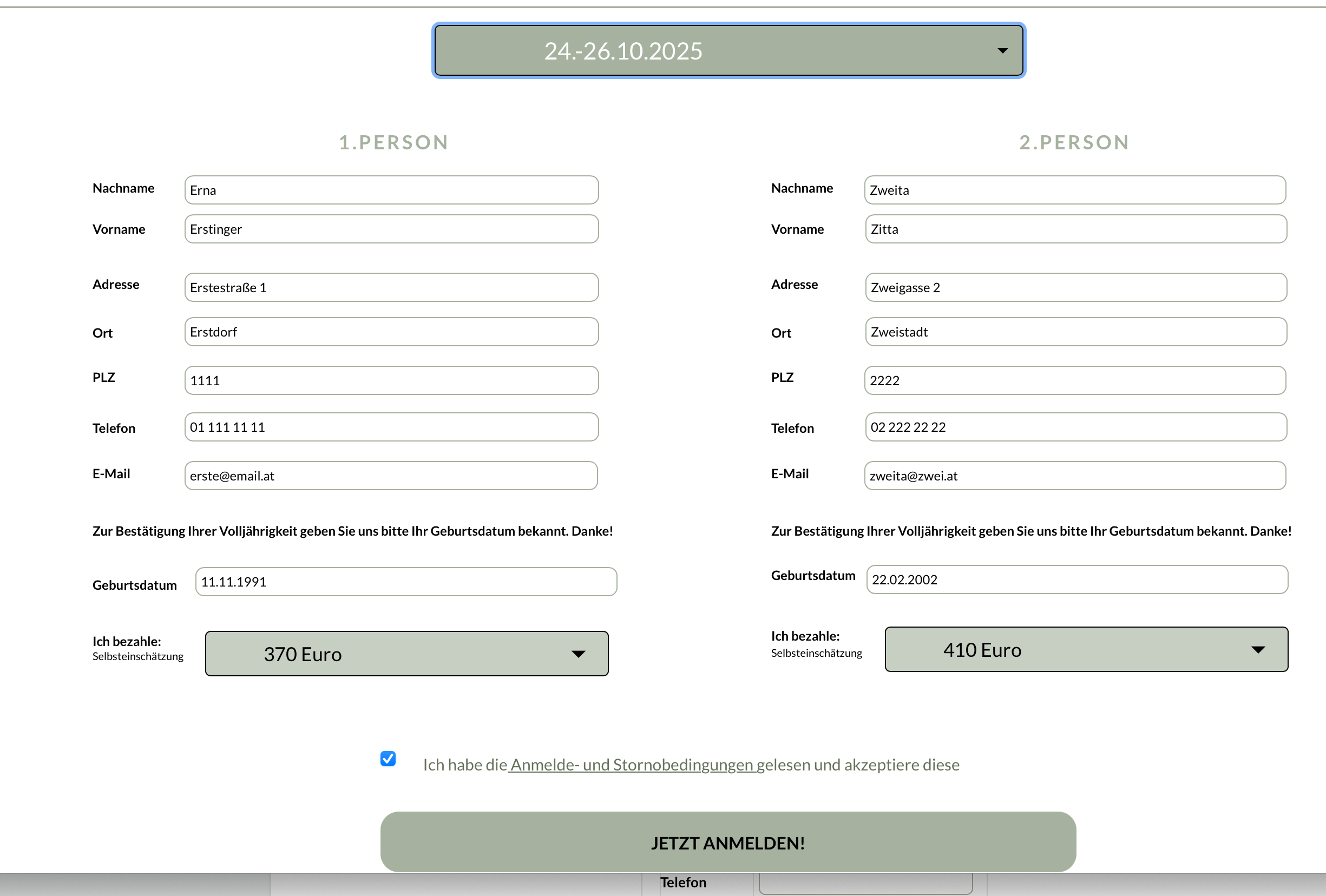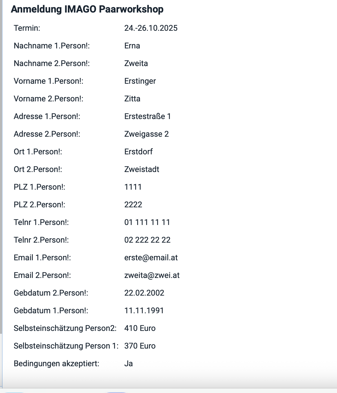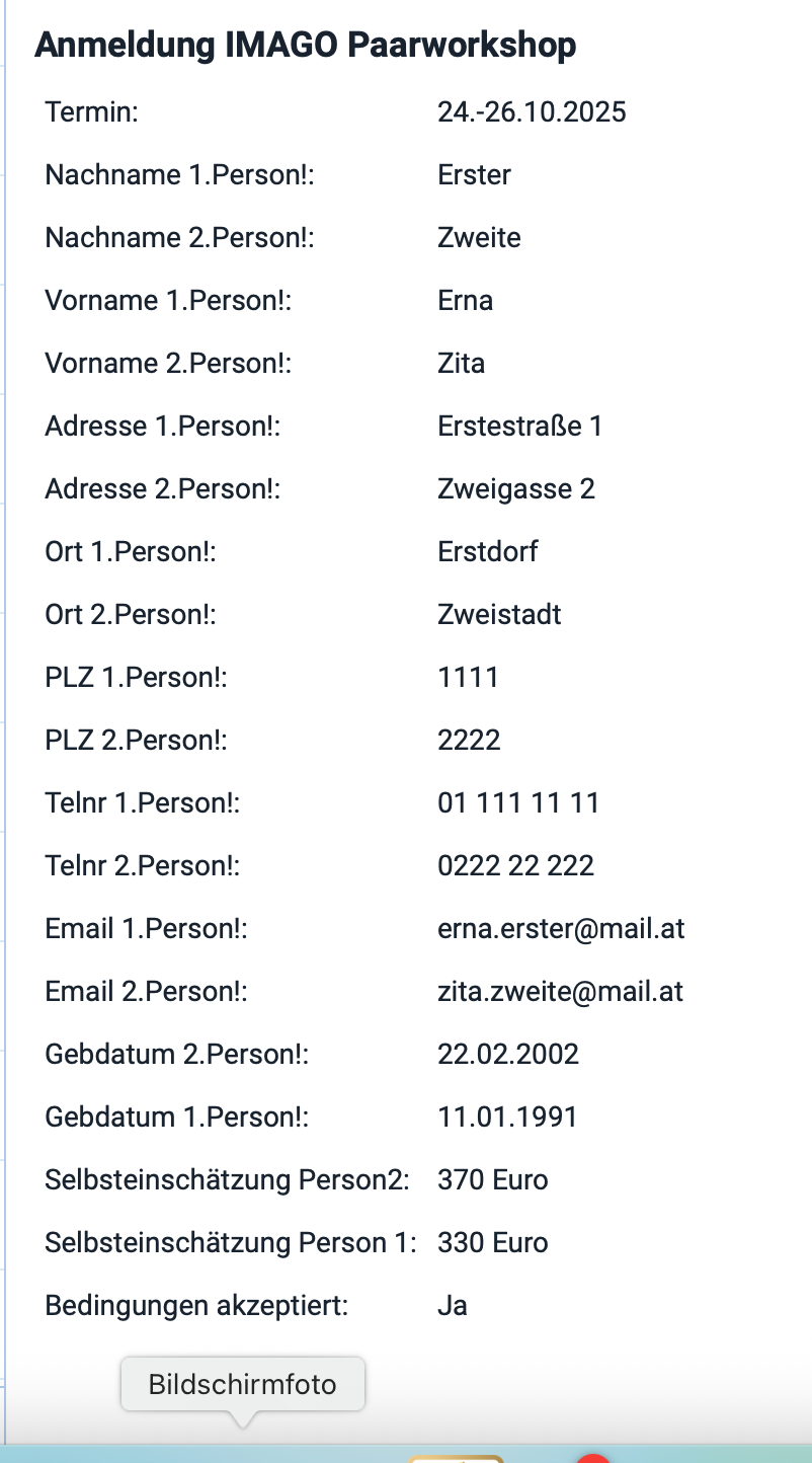 So, I have created a form on a sitely website to enrol people in a workshop. The form requires 2 people to enroll at once.
