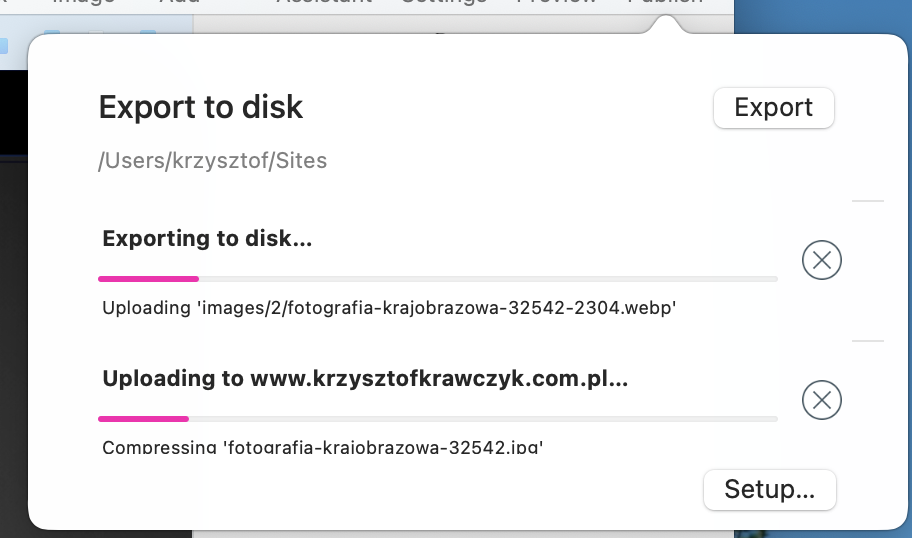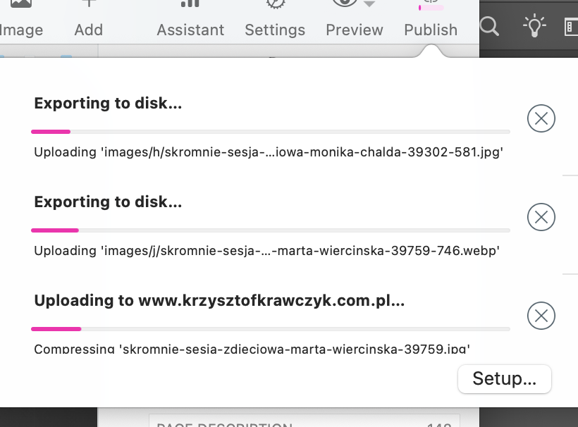 Yes, I understand “transmission” as the process of publishing a page. I don’t know what broke in the new version, but before that this process took a while. Now it lasts a few hours and only, as I estimate, it is maybe 10%. Unfortunately, it can’t be that you can’t lead it faster. I used to have a problem with publishing via FTP, now there is also a problem, but this time it is temporary. I’ll leave the computer overnight with this process and I’ll be able to get something after the day.