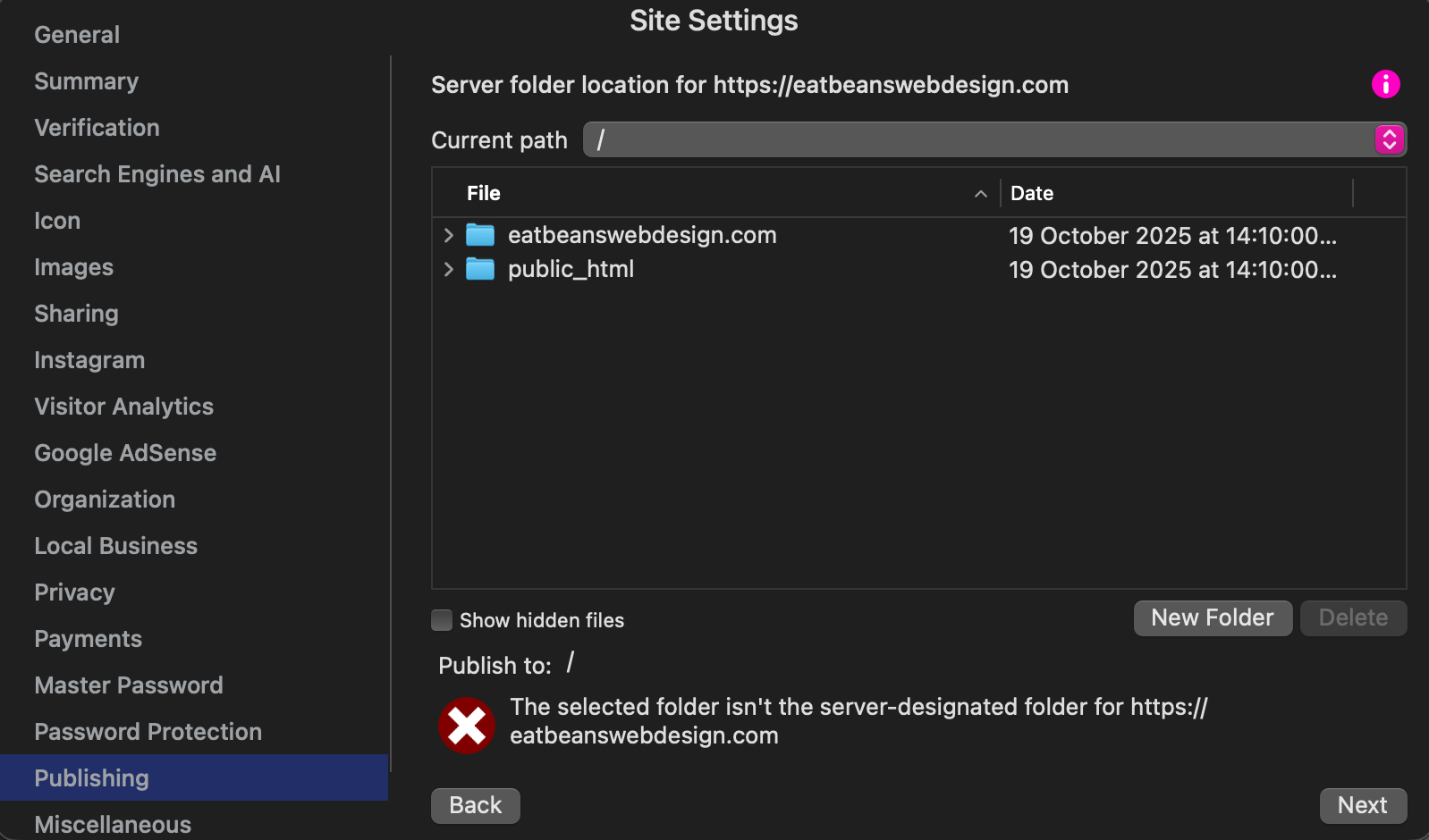 I know this is an issue that has appeared quite a few times. I am having an issue with publishing. I keep getting the same error message. I am trying out a new hosting company called Spaceship and can’t seem to upload any files. Ive attached a screenshot of my settings and a screenshot of the error message. If anyone or Duncan can point me in the right direction. I have tried Filezilla and seem to be able to connect.