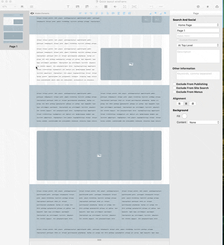 When beginning a new layout for a website I often find that using wire frames in Sparkle is a great way of testing and designing a basic layout/s without writing or inserting any text or graphics.
